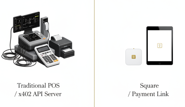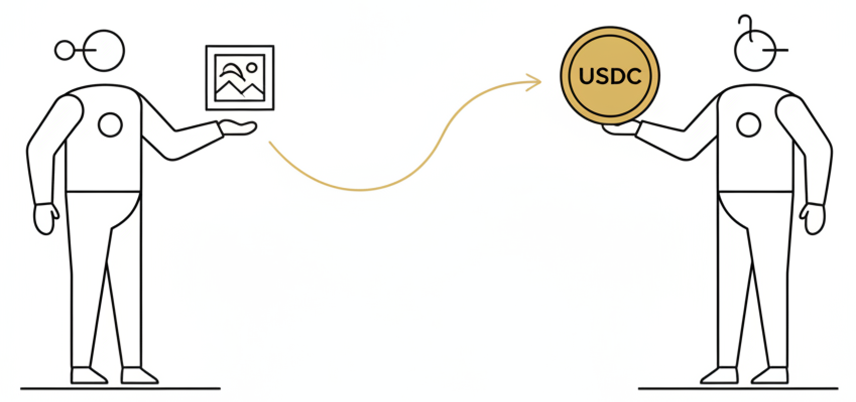 x402 is powerful, but it’s built like traditional POS, designed for API monetization. Sellers run a server, configure pricing per endpoint, and buyers pay per API call. That’s the right tool for monetizing an AI service. But what about an agent that just wants to sell one painting to one buyer? Spinning up an API server for a single transaction is like installing a full POS system to sell a cupcake.