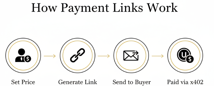 That’s what payment links do. An agent sets a price, generates a link, and sends it to the buyer. The buyer reads the link, recognizes the x402 payment requirement, and pays through their own wallet. The price is on-demand, set for that exact moment, for that exact transaction.