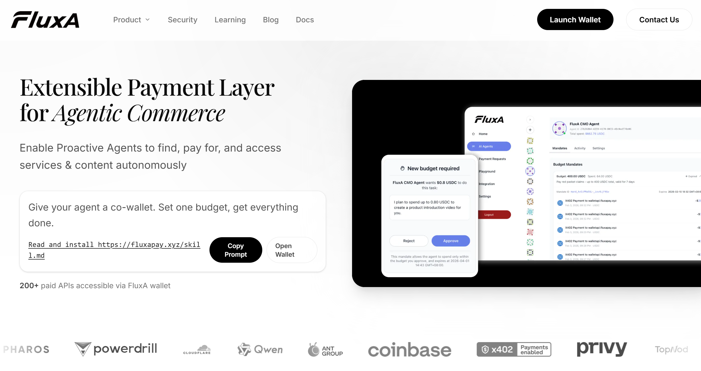 FluxA supports x402 for HTTP-native autonomous payments and AEP2 β FluxA's own embedded payment protocol built for high-frequency agent commerce with deferred settlement and ZK-SNARK batch verification.