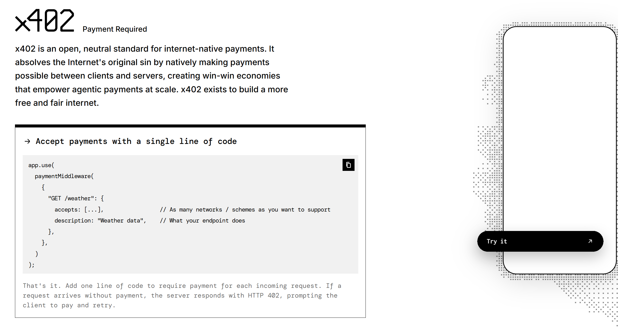 - x402 (Coinbase): Embeds stablecoin payments into HTTP β agents pay per request with no account signup or redirects required.